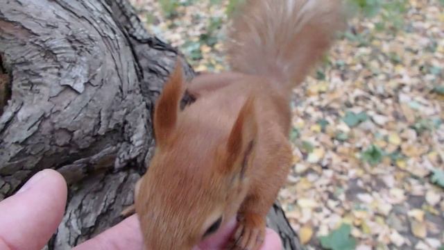 Пытаюсь накормить сразу двух бельчат