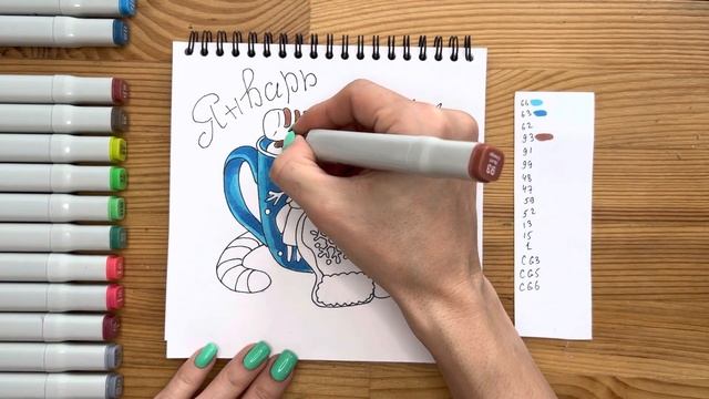 Рисунок скетч маркерами "Январь 2022" для скетчбука | Срисовка картинки для начинающих