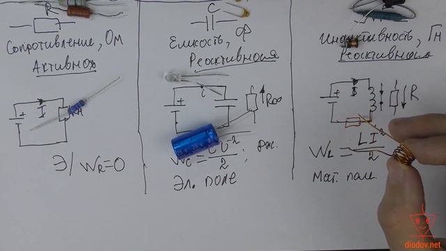 Резистор, конденсатор, катушка индуктивности, сравнение свойств в электрических цепях