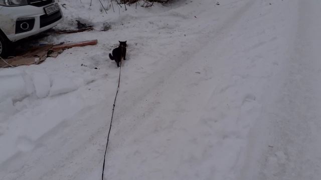 На прогулке котик Мишка.