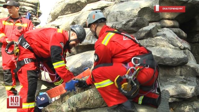 Учения спасателей в скалистой местности