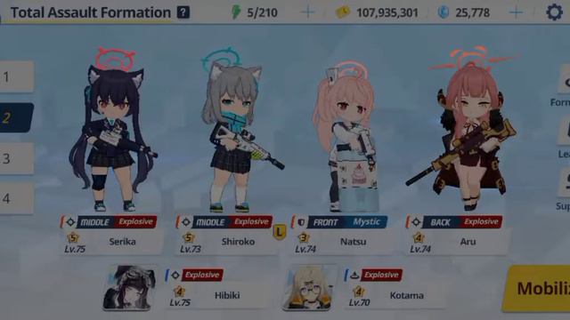 My much better run with Shiroko UE30. This time, Kaiten shield is non-existent. Team 1: 0:00 Team 2: 2:13 Team 1 Stats Lvl 75 Akari 4* 3444 555 Lvl 73 Shun 3* 3747 534 Lvl 75 Neru (Bunny) 4* 3744 665 Lvl 74 Mutsuki UE1* Lv30 5M74 655 Lvl 75 Hibiki UE3* Lv? 5MMM ??? (Assist) Lvl 73 Karin UE2* Lv40 347M 525 Team 2 Stats Lvl 75 Serika UE1* Lv30 3774 655 Lvl 73 Shiroko UE1* Lv30 5777 665 Lvl 74 Natsu 3* 3777 655 Lvl 74 Aru 4* 3477 655 Lvl 70 Kotama 4* 511M 314 Lvl 75 Hibiki 4* 347M 615 Thanks to CDough for the BNeru no pull strat, which is replicated by Ahri in this video: https://www.youtube.com/watch?v=TijgzIVWEXo