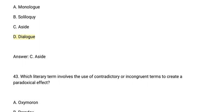 CUET MA in English Literary Terms MCQ practice for examination