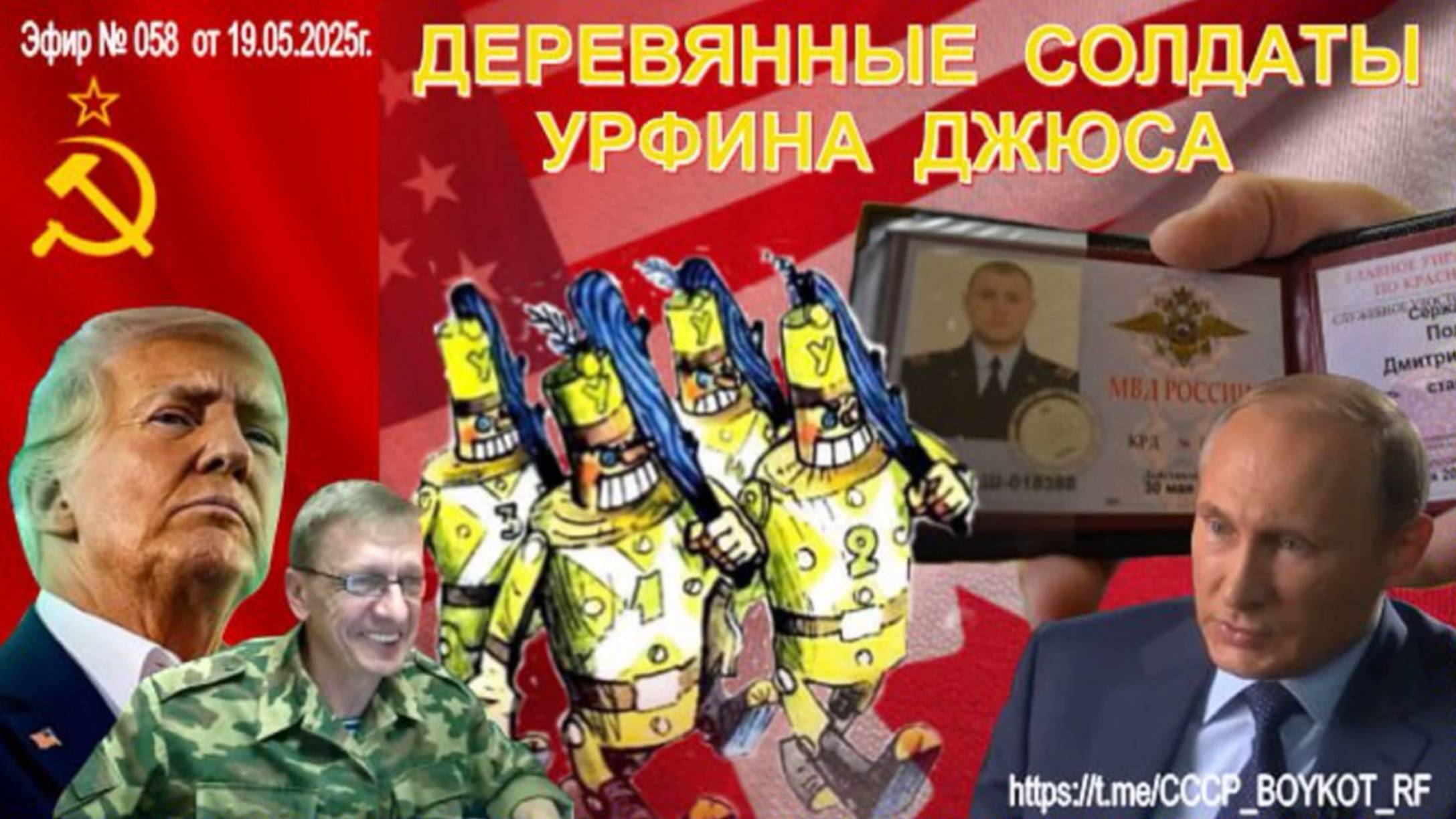 ПолитИнформация: 🎯ДЕРЕВЯННЫЕ СОЛДАТЫ УРФИНА ДЖЮСА в 21:30 - живые эфиры 🎤 в основном чате @QRBOYKOT или на канале https://t.me/CCCP_BOYKOT_RF