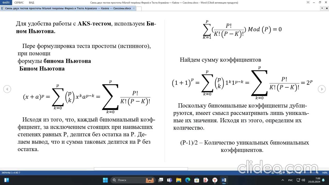 Связь двух тестов простоты: Ма́лой теоре́мы Ферма́ и Теста Аграва́ла — Кая́ла — Саксе́ны