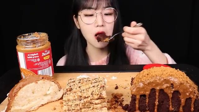 ASMR MUKBANG 로투스 퍼지케이크 말렌카 모카카라멜케이크 프라푸치노 모카 먹방 Lotus Chocolate Cake Dessert Eating