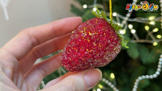 333572 Украшение новогоднее Клубника с капельками россы шебби-шик винтаж 4см