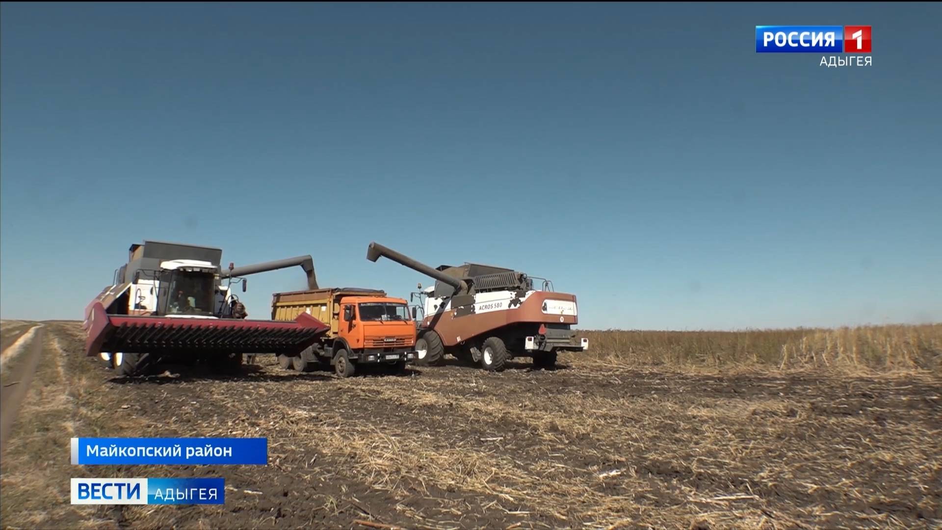 Из них 58 занято подсолнечником, его уже обмолочено почти 60 процентов. Средняя урожайность более 20 центнеров с гектара. В одном из хозяйств Майкопского района, где сейчас полным ходом идет уборка, побывала наша съемочная группа.