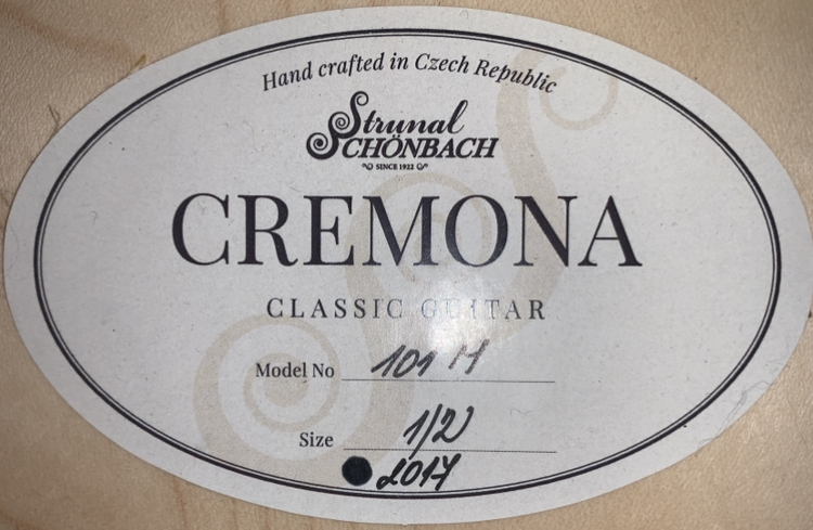 Cremona 101M 1/2 классическая гитара Гитара классическая CREMONA мод. 101M размер 1/2 (Пр-во Чехия) верхняя дека-ель, нижняя дека и обечайка-клен, гриф-БУК, накладка грифа и струнодержатель –БУК, колки- на золотой планке, отделка-глянцевый лак, струны – нейлон, цвет - Sunburst с черной каплей