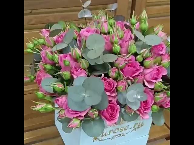Букет в коробке шкатулке с кустовой розой и эвкалиптом Лика