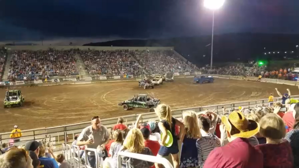 На американском шоу автомобилей запчасть одного из участников шоу улетела в толпу.