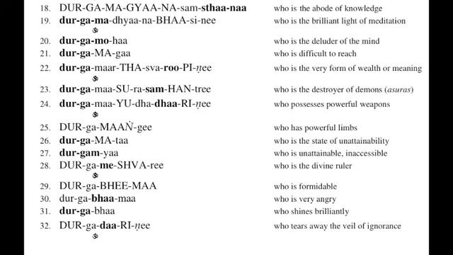 Мантра 32 имени Дурги (утренняя мантра в ашраме Бихарской школы йоги)