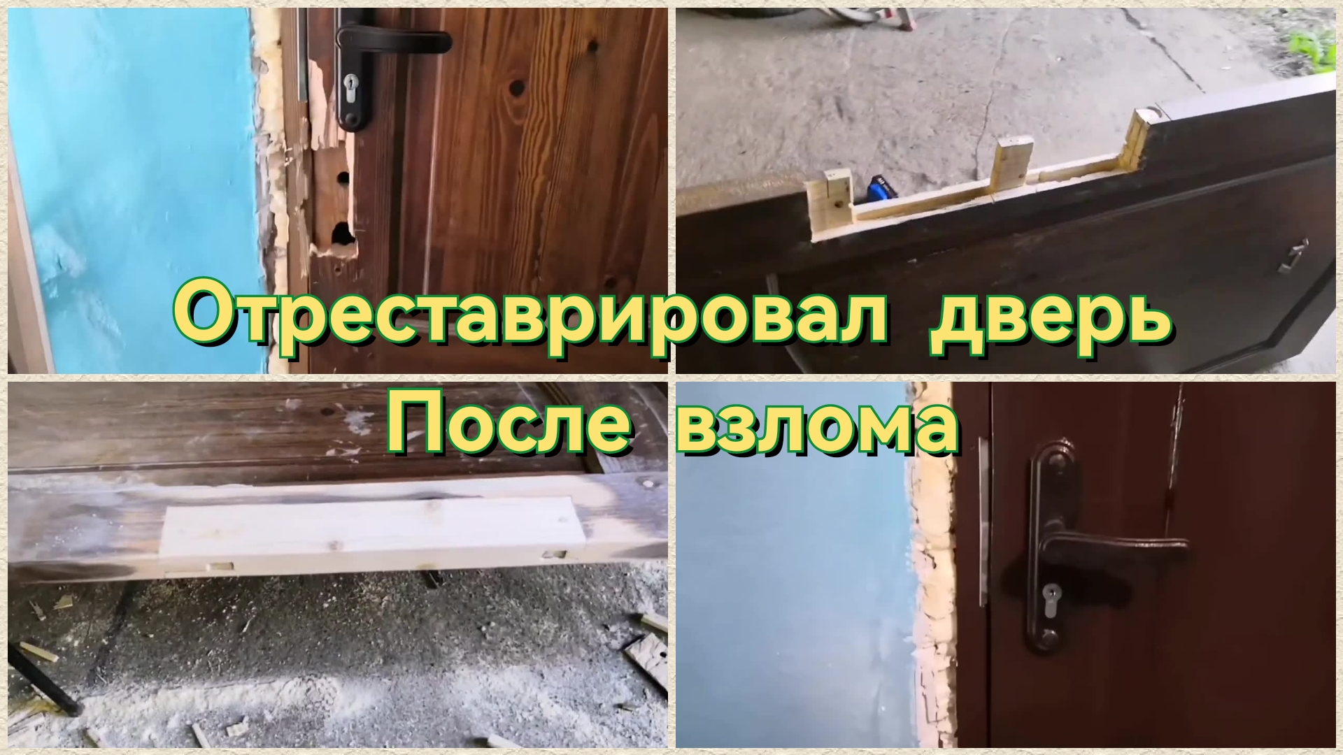 Сделал реставрацию деревянной двери после взлома вандалов, удалил все дефекты, вставил новую вставку, врезал обратно замок и вот как новая дверь.
