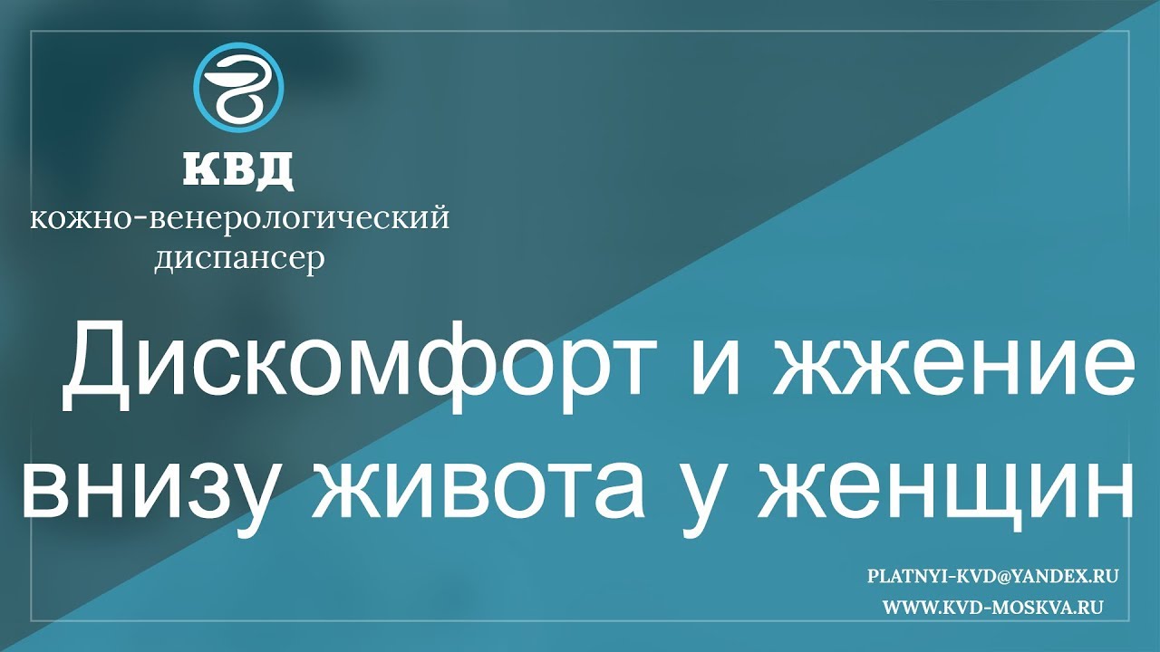 Дискомфорт и жжение внизу живота у женщин – довольно частое явление у представительниц прекрасного пола любого возраста. Около 50% случаев с таким симптомом говорят о цистите. Подробнее - https://kvd-moskva.ru/zhzhenie-vnizu-zhivota-u-zhenshchin/ Для подробной консультации по этому вопросу, обращайтесь в платный центр КВД-Москва. Наши телефоны: 8 (495) 642-30-37, 8 (495) 532-66-57 Наш e-mail: platnyi-kvd@yandex.ru Наш сайт: http://kvd-moskva.ru