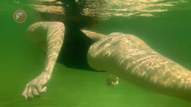 Купальщица в воде теплого минерального озера,