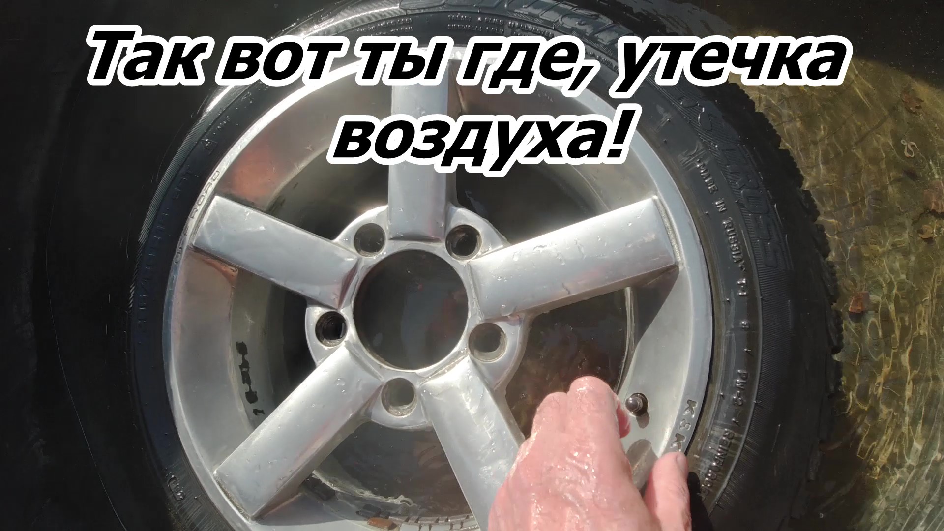 Выясняю место утечки воздуха из шины