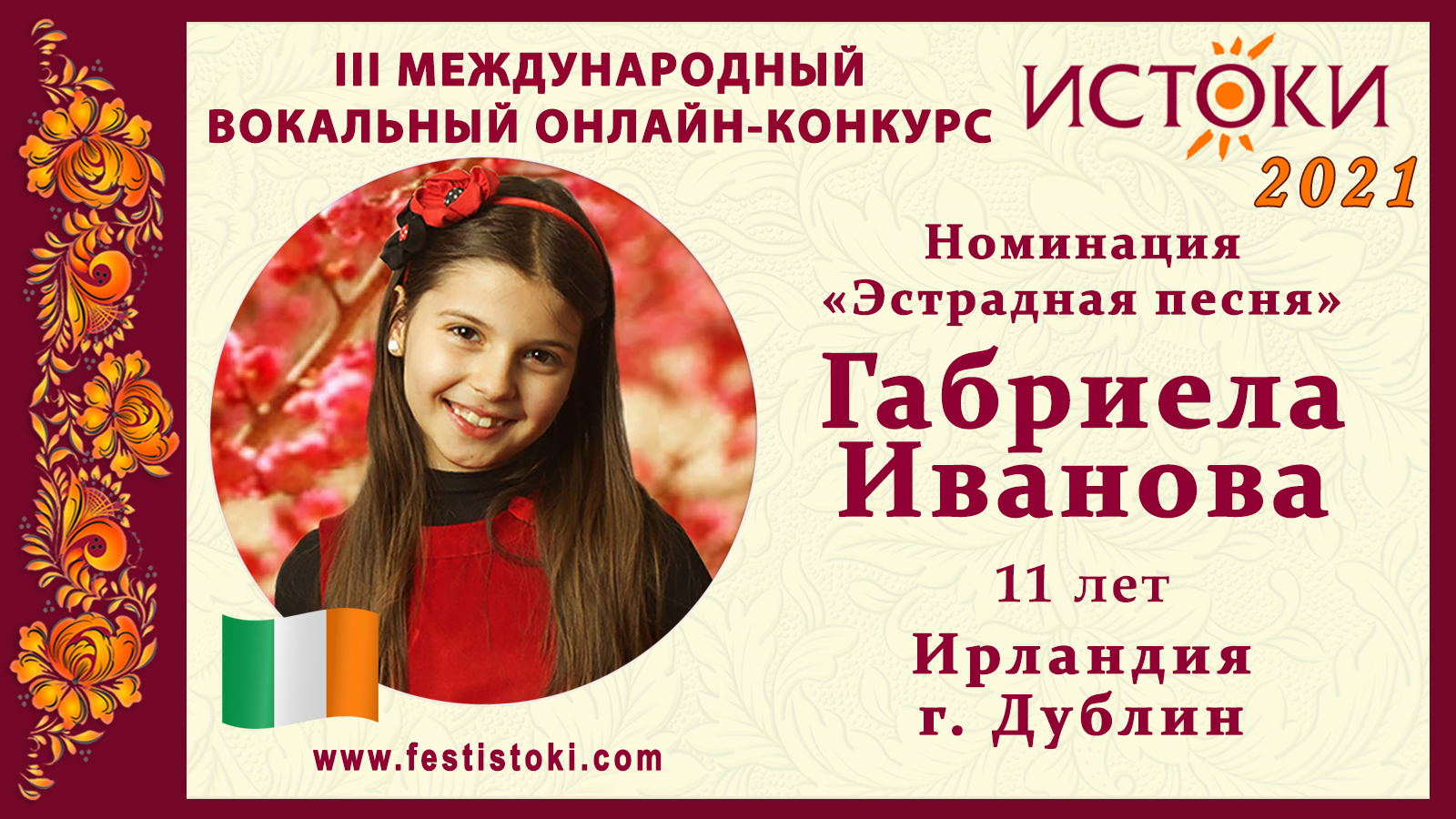 Габриела Иванова, 11 лет. Ирландия, г. Дублин. "Something’s got a hold on me"