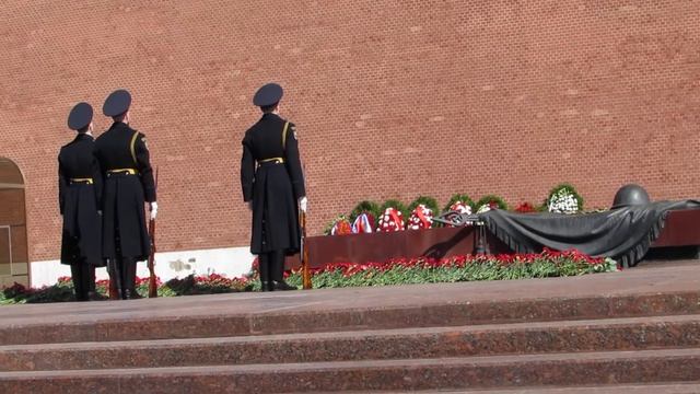 Ежечасно караул у Могилы Неизвестного Солдата в Александровском саду у Московского Кремля меняется. 5 мая ветераны компании "Роснефть" пришли сюда для возложения цветов к мемориалу. Я сделал много снимков и записал на видео смену караула в 15:00 ч.