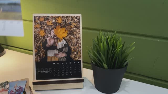 Настольный календарь с фотографиями на заказ. Деревянная подставка в комплекте.