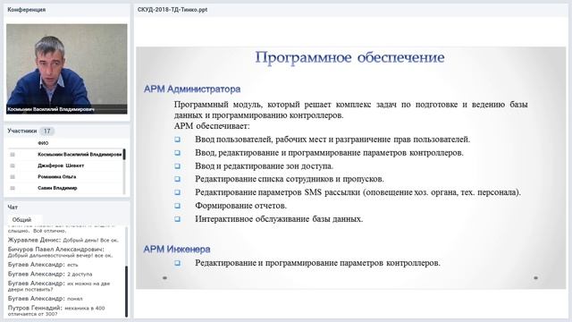 Вебинар “Системы контроля и управления доступом производства НПО “Сибирский Арсенал”. Особенности применения и программирования” Контроллеры доступа “Курс 100” (варианты 2 и 3) предназначены для организации системы контроля и управления доступом. Наряду с функциями контроллера доступа, “Курс 100” обладает функциональностью охранного приёмно-контрольного прибора. Один контроллер доступа может контролировать до двух независимых точек доступа разного типа с контролем прохода в двух направлениях. Возможно применение контроллеров доступа “Курс 100” для автономной работы и в составе интегрированной системы безопасности “Лавина”. Для передачи данных на пульт охраны через компьютерную сеть “Курс 100” имеет IP-коммуникатор. Программа вебинара 1. Состав системы контроля и управления доступом 1.1 Турникеты SA-300 и SA-400 1.2 Контроллер доступа "Курс-100" 1.3 Картоприёмник SA-310K 1.4 Ограждения 1.5 ПО "Лавина". 2. Особенности оборудования. 3. Варианты использования системы. Лектор – ведущий специалист отдела технической поддержки и испытаний НПО "Сибирский Арсенал" Космынин Василилий Владимирович Вебинар состоялся при поддержке ООО "ТД ТИНКО" 18.09.2018 СКУД НПО "Сибирский Арсенал" в Каталоге ТСБ "ТД ТИНКО": https://www.tinko.ru/catalog/category/114/filter/28-is-2889/