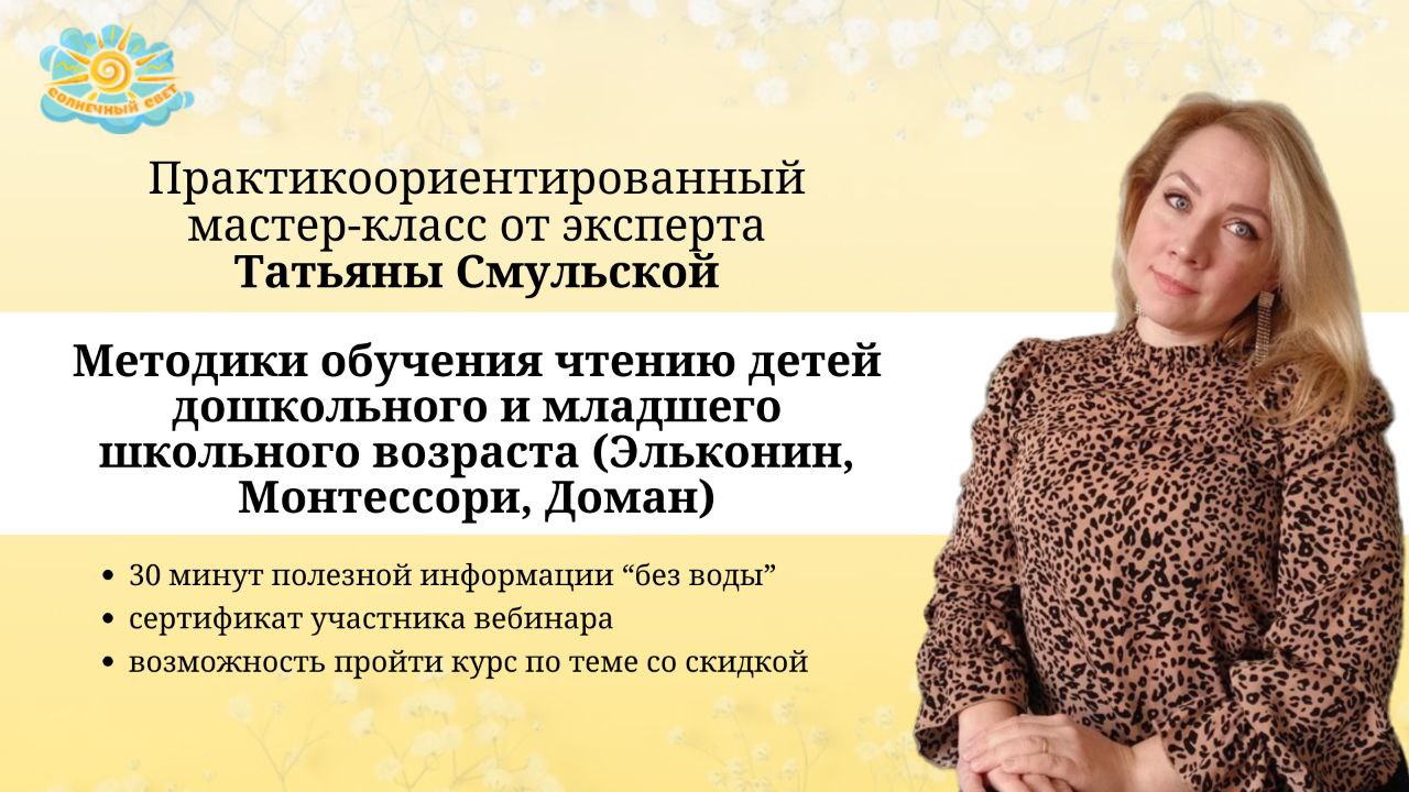 Тема " Методики обучения чтению детей дошкольного и младшего школьного возраста. " . Анонс . На этом мастер-классе мы рассмотрим некоторые методики обучения детей чтению. Вы узнаете о преимуществах и недостатках этих методов. Мы подробно рассмотрим три из них: 1. Звукобуквенный анализ по методике Давида Эльконина; 2. Обучение чтению по системе Марии Монтессори; 3. Обучение чтению по методике Глеба Домана. Кроме того, я поделюсь с вами интересными играми, которые помогут сделать процесс обучения чтению увлекательным и эффективным для детей дошкольного и младшего школьного возраста.