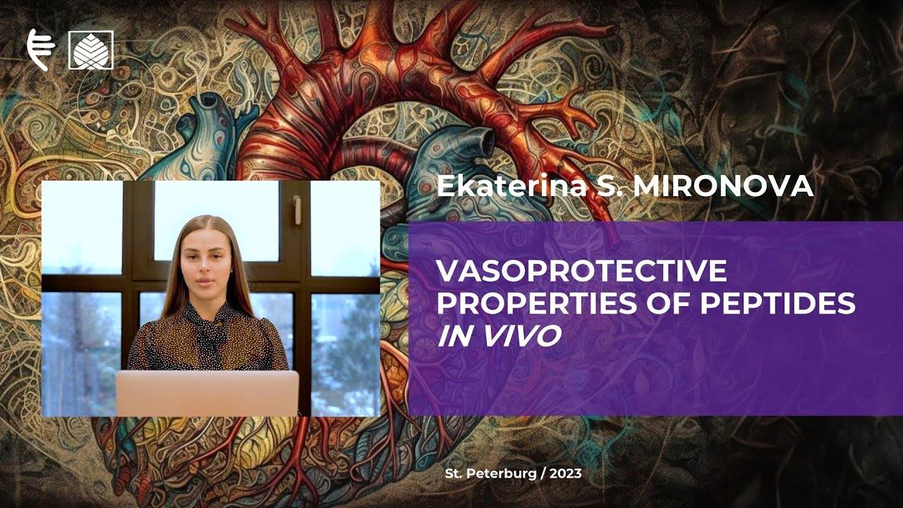 Presentation topic: Vasoprotective properties of peptides IN VIVO Speaker: Ekaterina Sergeevna Mironova — candidate of Biological Sciences, Senior Researcher at the Laboratory of Molecular Mechanisms of Aging of the Department of Biogerontology at the St. Petersburg Institute of Bioregulation and Gerontology