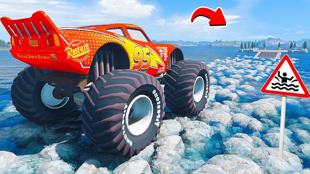ПРОЕХАЛ ВОДНЫЕ КАМНИ на ГИГАНТСКОМ МОЛНИИ МАКВИН в ГТА 5 МОДЫ - ЭКСПЕРИМЕНТЫ в GTA 5 MODS