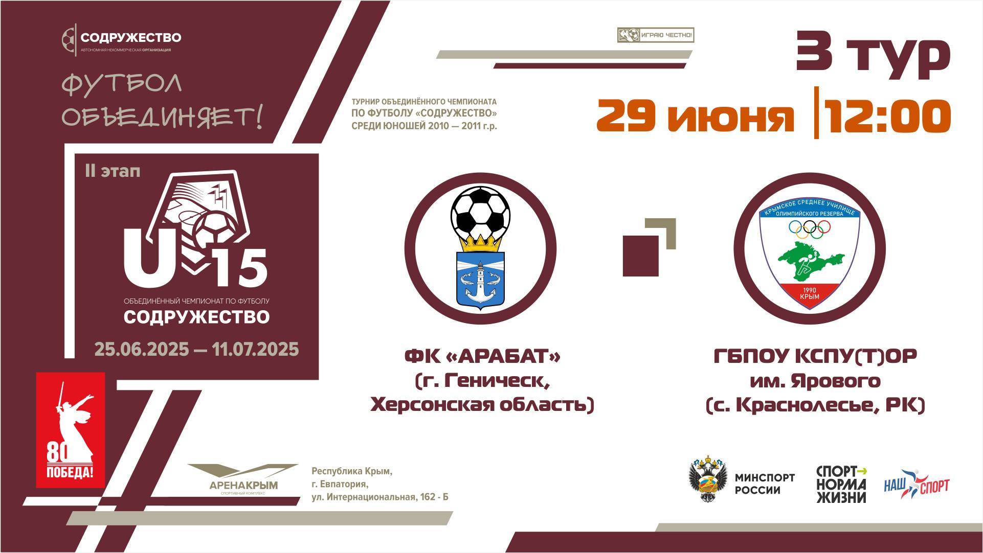 3 ТУР | U-15 | ФК «Арабат» (г. Геническ, Херсонская область) - УОР (U-15) (г. Симферополь, РК)
