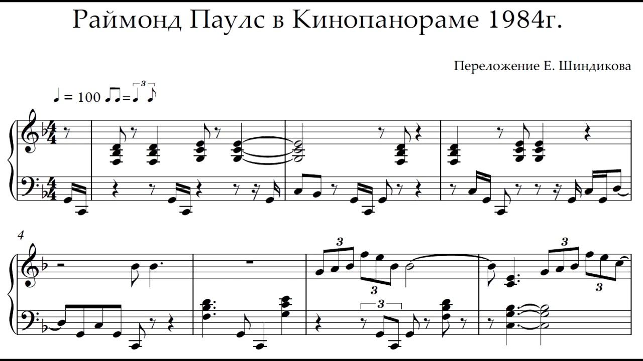 Ноты Раймонд Паулс в Кинопанораме 1984 г