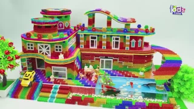Магнитные шарики - Постройте Удивительный Тропический Особняк С Волнистой Крышей И Горкой К Бассейну