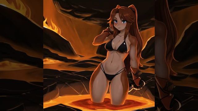 Красивые девушки купаются в раскаленной лаве.