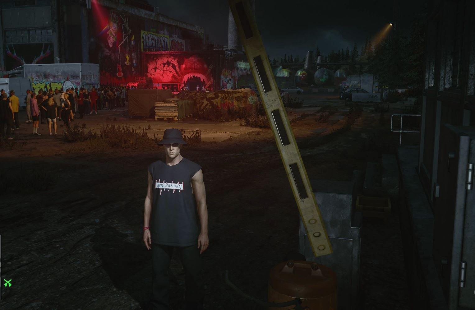 С собой ничего брать не нужно. В инструкции описан самый простой и безопасный способ бесшумного прохождения в костюме, и все необходимые предметы можно найти на локации. 00:00 начните в костюме у входа Стартуйте возле входа в клуб в футболке. В данной миссии классический смокинг выглядел бы неуместно, поэтому вместо "костюма" мы ходим в футболке. Сразу развернитесь, пройдите через толпу и двигайте вправо - мимо крана, до входа в гараж. 1:05 Агент Ловенталь Прыгайте через забор, и незаметно оглушите курьера, и спрячьте тело в контейнер. Заберите ключи. Возле гаража заберите крысиный яд. Вернитесь к гаражу, откройте отсек с едой на мотике доставщика, и подсыпьте яд. Позвоните в звонок, и прячьтесь. Когда байкер заберет еду, прокрадитесь в туалет и спрячьтесь в шкафу - ждите Ловенталя. Его будет тошнить, и вы сможете незаметно со спины подойти и утопить в унитазе. Тело спрячьте в шкаф, где сидели. 3:22 Агент Родос В этом же здании поднимитесь на этаж выше, и пригнитесь под окном комнаты охраны. Время от времени Родос будет приходить сюда, опираться на подоконник, и можно незаметно его стащить вниз. Охранники в комнате действуют в разнобой, и иногда могут краем глаза заметить похищение - будьте внимательны. Сломайте шею и спрячьте в контейнер рядом. 4:25 Агент Темза Поднимитесь еще на этаж выше, и встаньте на середине мостика, соединяющего два здания. Подождите, когда Темза встанет ровно под мешком, и скиньте на него сверху - несчастный случай. Даже прятать ничего не нужно. 5:17 Агент Грин Пройдите через мост, и в небольшой каморке выключите электричество. Агент Грин пойдет чинить поломку, и на выходе вы можете ударить его со спины. Сломайте шею, и спрячьте в контейнер. 6:53 Агент Лебедь Вернитесь к месту, где оглушили курьера, и зайдите на территорию бара. Найдите в переулке гаечный ключ, пролезьте через окно к месту, где курит Лебедь, и выкрутите газовый баллон, когда никто не видит. 8:33 уходите с локации Вы можете сразу уйти с локации, не дожидаясь взрыва. Можно вернуться тем же путем, что и пришли, или выйти через клуб (не столкнитесь с другими агентами).