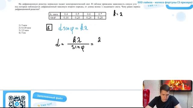 На дифракционную решетку нормально падает монохроматический свет. В таблице приведена - №37706