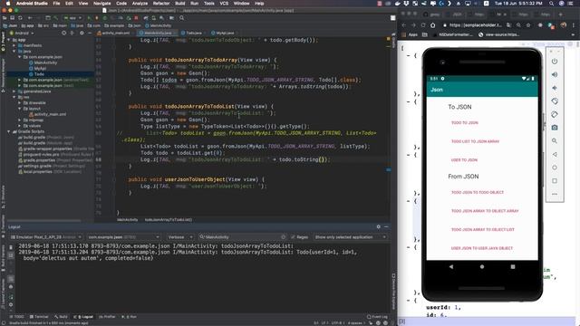 In this video we will be looking at how to parse incoming JSON from an API or simply using a JSON string. We will be using GSON library by Google which makes our life a hell simpler as compared to the traditional way of using Java way of JSON parsing. Gson is a Java library that can be used to convert Java Objects into their JSON representation and vice-versa. It provides simple toJson() and fromJson() methods to convert Java objects to JSON and vice-versa. ⭐ Kite is a free AI-powered coding assistant that will help you code faster and smarter. The Kite plugin integrates with all the top editors and IDEs to give you smart completions and documentation while you’re typing. I've been using Kite for 6 months and I love it! https://www.kite.com/get-kite/?utm_medium=referral&utm_source=youtube&utm_campaign=yourstruly&utm_content=description-only FREE $100 credit @Digital Ocean: https://m.do.co/c/3208f08b3324 Patreon: https://www.patreon.com/trulymittal Subscribe: https://www.youtube.com/c/yourstruly267?sub_confirmation=1 Gson: https://github.com/google/gson Github (Tutorial): https://github.com/trulymittal/JsonGson ——————————————— What I use ——————————————— Mouse: https://amzn.to/2O9RJtu Keyboard: https://amzn.to/2qxajCU Keyboard 2: https://amzn.to/2XDWH4X Monitor: https://amzn.to/2pDg7dH Processor: https://amzn.to/347WWIb RAM: https://amzn.to/2QEkUqw Graphics: https://amzn.to/33aBrF4 Microphone: https://amzn.to/2DabdI9 #yoursTruly #gson #json #parsing #jsonparsing #android #java #programming #tutorial #howto