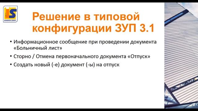 В видео рассматривается инструмент для конфигурации Зарплата и управление персоналом, который был разработан компанией "ИнфоСофт" в рамках проекта по переносу заработной платы и кадрового учета в конфигурацию ЗУП 3.1 Вводные данные: Клиент - производственное предприятие. Численность сотрудников - больше 600 человек. Отдел кадров - 2 сотрудника. Бухгалтер по расчету заработной платы - 1 сотрудник. Производство работает круглосуточно. У сотрудников сменный график работы. Сотрудники ходят в отпуск по графику. Права на отпуск - согласно ТК РФ. Как начислить больничный во время отпуска? Подробнее о доработке для типовой конфигурации ЗУП 3.1 в видео. Если вы хотите оптимизировать процессы в любой области учета, обращайтесь в компанию "ИнфоСофт". Сайт https://bit.ly/2YRv7nb