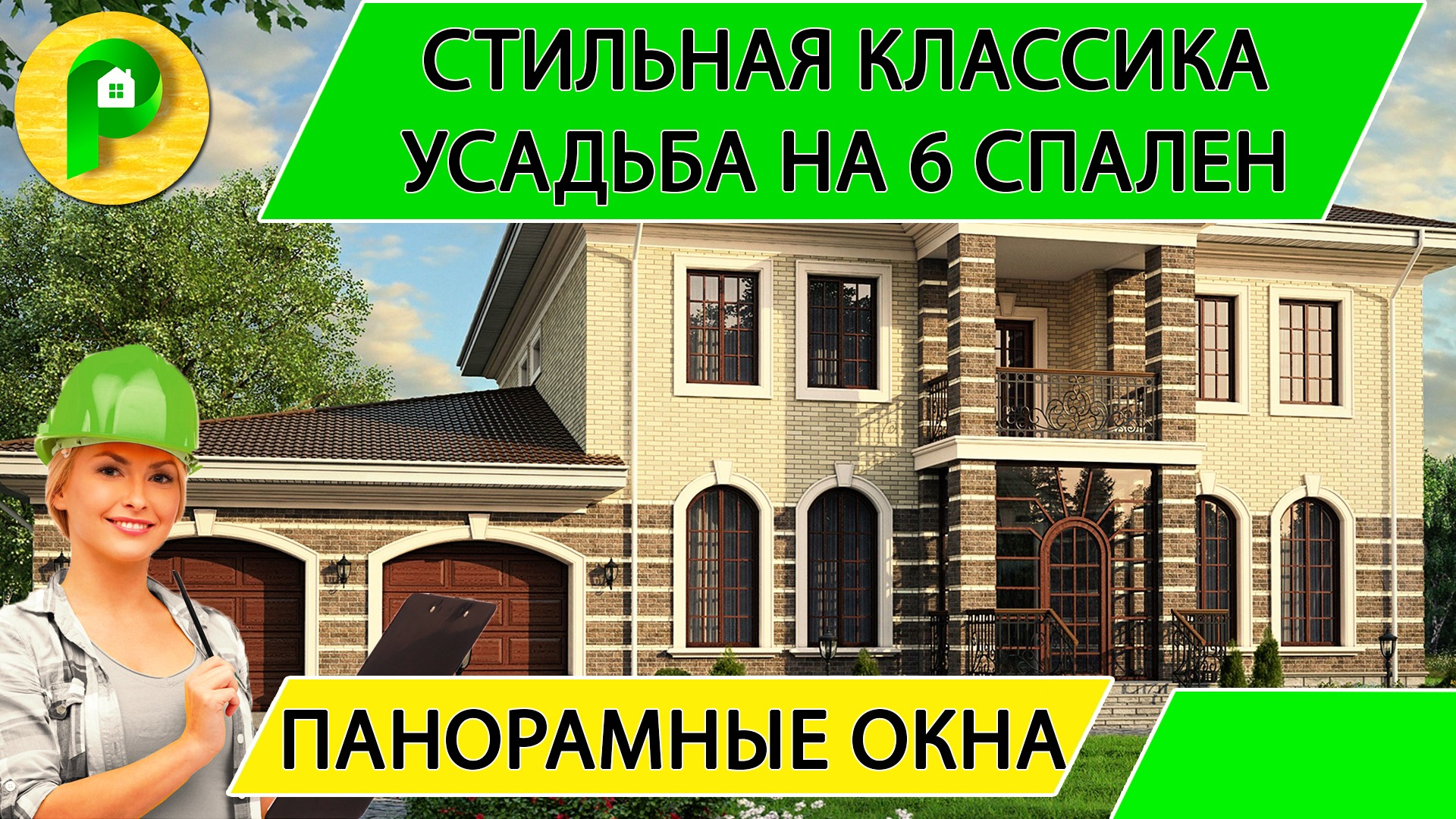 Проект дома из кирпича в классическом стиле с гаражом и 6 спальнями, 470 кв.м. Ремстройсервис МR 17