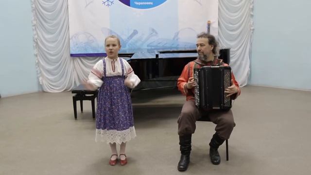 Смирнова Станислава - учащаяся 3А класса по ДПОП "Музыкальный фольклор" Программа: "Масленица- кривошейка" (календарная песня) "Скакал козёл в огород" (шуточная песня) Преподаватель - А.И. Романова Концертмейстер - П.В. Романов