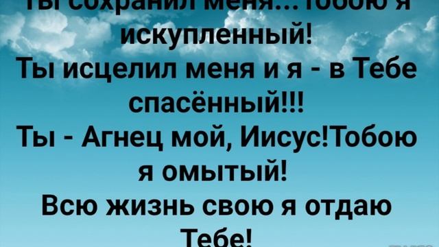 ХРИСТИАНСКИЕ ПЕСНИ ДЛЯ ХВАЛЫ ПОКЛОНЕНИЯ ПРОСЛАВЛЕНИЯ ВООДУШЕВЛЕНИЯ ЕВАНГЕЛИЗАЦИИ #господь#музыка#христианская_музыка#музика#христианскиепесни#бог#христианскиестихи#любовь#христианство#стихи#песня#песни#иисус#иисусхристос#иисусмойбог#иисус_христос#иисусбог#иисусгосподь#хвалы_и_поклонения#хваление#хвала#прославление "ТЫ - АГНЕЦ МОЙ, ИИСУС!" СЛОВА, МУЗЫКА: ЖАННА ВОЛКОВА-ВАРЛАМОВА Стихи Жанна Юрьевна Волкова(Варламова) Я - нерукотворное Твоё создание. С любовью Ты, Отец, меня творил. Создал Ты всё вокруг во всей Вселенной. А человека - властью всей - над всем Ты наделил!!! Припев: Ты сохранил меня...Тобою я искупленный! Ты исцелил меня и я - в Тебе спасённый!!! Ты - Агнец мой, Иисус! Тобою я омытый! Всю жизнь свою я отдаю Тебе! Ты наделил меня Божественною силой... Дал власть в уста - Господствовать над всем!!! Повелевать греху...пленять его - во Имя... И, жить в Победе, то есть, во Христе! Припев: Ты сохранил меня...Тобою я искупленный! Ты исцелил меня и я - в Тебе спасённый!!! Ты - Агнец мой, Иисус! Тобою я омытый! Всю жизнь свою я отдаю Тебе! Ты наделил меня Божественною силой... Дал власть в уста - Господствовать над всем!!! Повелевать греху...пленять его - во Имя... И, жить в Победе, то есть, во Христе! Припев: Ты сохранил меня...Тобою я искупленный! Ты исцелил меня и я - в Тебе спасённый!!! Ты - Агнец мой, Иисус! Тобою я омытый! Всю жизнь свою я отдаю Тебе! Я - во Христе! А значит, стал я новым! Я - во Христе! А значит, я - спасённый!!! Руководи, Бог, мной!!! - Пусть будет Твоё иго!!! И сохрани меня от всякого греха!!! 23.11.2020 Жанна Волкова-Варламова