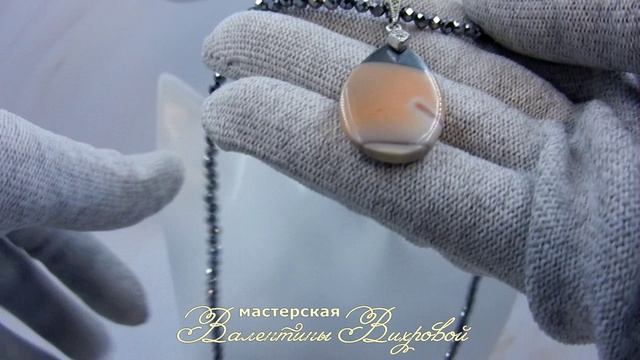 Капля, ожерелье с подвеской, розовый агат и гематит