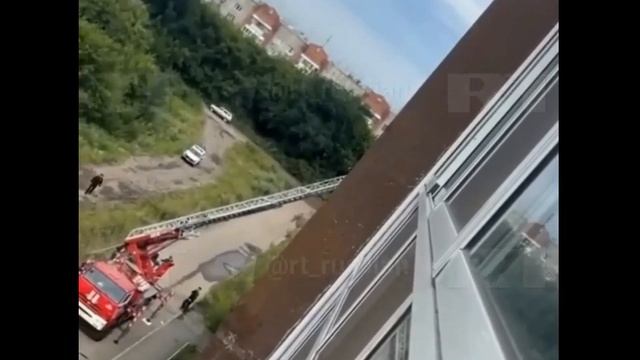 Сотрудник МЧС в последний момент ухватил женщину, которая оступилась и упала с пожарной лестницы