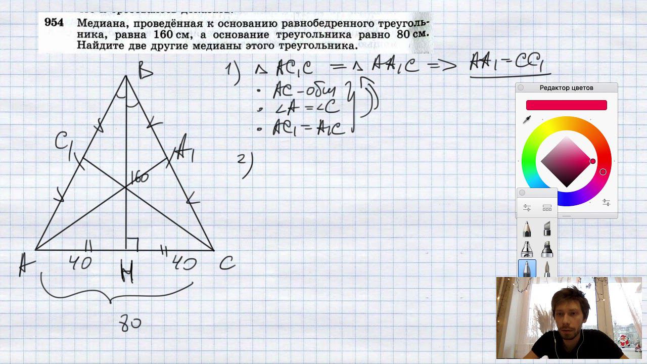 №954. Медиана, проведенная к основанию равнобедренного треугольника, равна 160 см, а основание треугольника равно 80 см. Найдите две другие медианы этого треугольника. Мой второй канал для подготовки к ЕГЭ и ОГЭ - https://www.youtube.com/ЕвгенийСумин TikTok - https://vm.tiktok.com/WJJwK9 Like - https://likee.com/user/@ge0metriya Инстаграм - https://www.instagram.com/EGE_OGE.math Личный инстаграм - https://www.instagram.com/ee_sumin VK - https://vk.com/evgeniysumin FB - https://www.facebook.com/EvgeniySumin