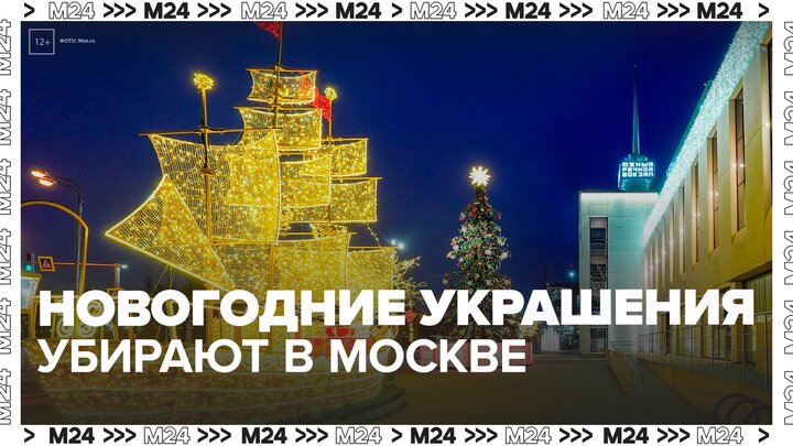 Новогодние украшения убрали с Северного речного вокзала - Москва 24