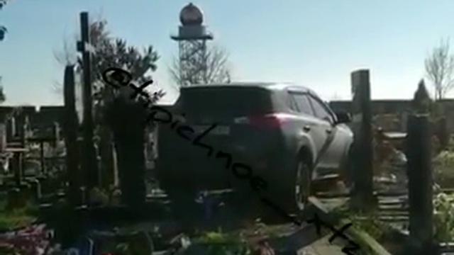 Священник крушит надгробия джипом