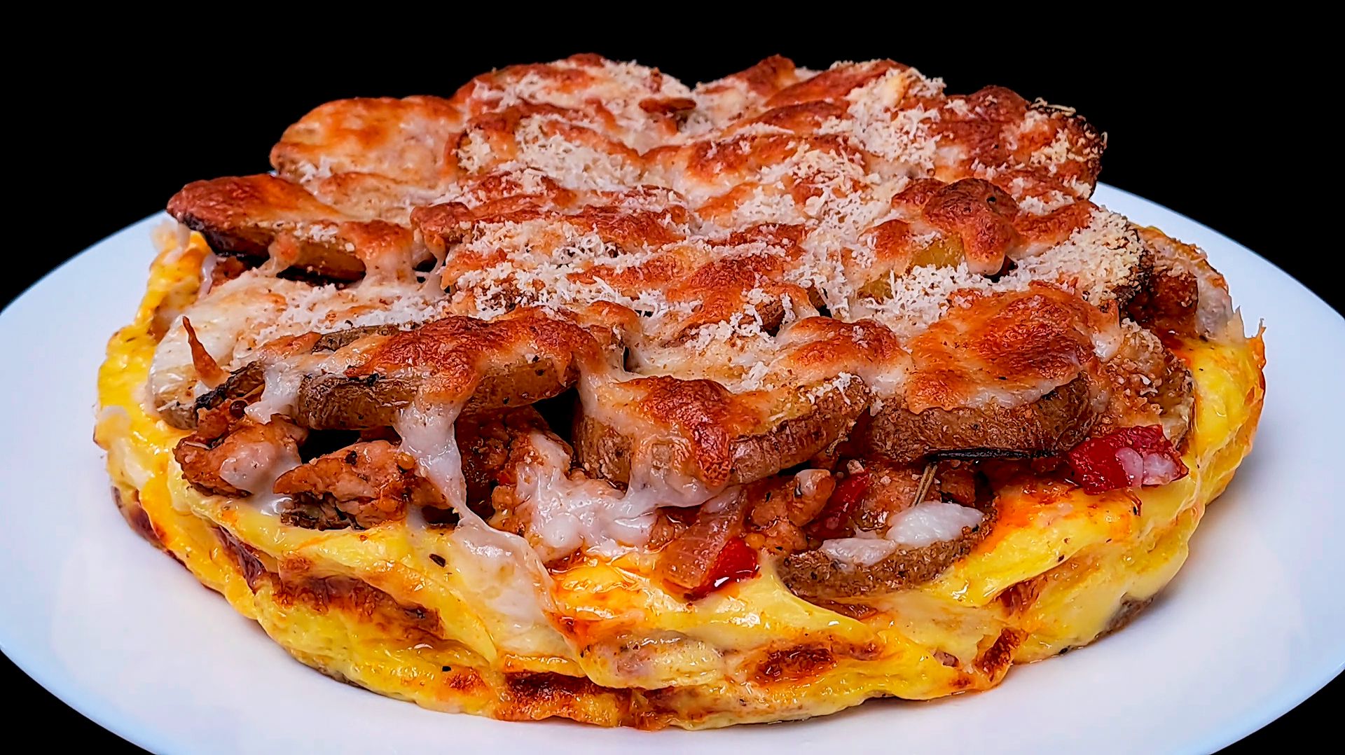 Ищете идею для идеального семейного ужина? Этот необычный картофельный пирог с мясным фаршем покорит вас с первого кусочка! Мы приготовим сочную начинку с болгарским перцем, томатным соусом и пикантной французской горчицей. Сверху — нежная заливка, два вида сыра (моцарелла и пармезан) и хрустящие панировочные сухарики. Аромат орегано и розмарина наполнит весь дом! Это блюдо выглядит очень эффектно и готовится из доступных продуктов. Обязательно попробуйте! 👇 Полный список ингредиентов ищите ниже. 3 яйца. соль, черный перец, сушеный молотый чеснок, орегано, розмарин, оливковое масло. растительное масло. фарш 300 грамм. 1 белый лук. 1 красный болгарский перец. чеснок 4 штуки. томатный соус 100 грамм. французская горчица 1 ложка. ложка сметаны. сыр моцарелла 120 грамм. пармезан сыр 30 грамм. щепотка панировочных сухарей. Подписывайся на канал и делись видео с друзьями. Также у меня на канале еще очень много вкусных рецептов, и еще больше рецептов ждет вас впереди. Телеграмм https://t.me/vkusnierecipe Вконтакте - https://vk.com/vkusnierecipe Одноклассники - https://ok.ru/group/70000000861442 Дзен - https://clck.ru/3GMSjT Весь музыкальный контент, использующийся в видео на данном канале размещён на основании лицензии Creative Commons 4.0 вариант лицензии CC0 (https://creativecommons.org/licenses/by/4.0/) с медиатеки, где не требуется указания авторства.