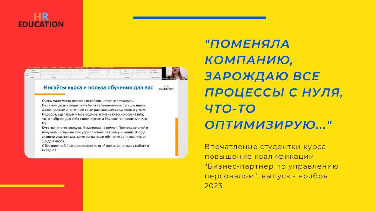 Впечатление Моргун Светланы, студентки курса "HR бизнес-партнер"