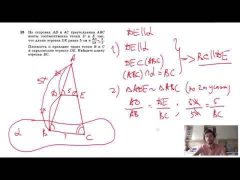 №28. На сторонах АВ и АС треугольника ABC взяты соответственно точки D и Е так, что DE = 5 см и BD/DA=2/3. Плоскость α проходит через точки B и С и параллельна отрезку DE. Найдите длину отрезка ВС. Мой второй канал для подготовки к ЕГЭ и ОГЭ - https://www.youtube.com/ЕвгенийСумин Инстаграм - https://www.instagram.com/EGE_OGE.math Личный инстаграм - https://www.instagram.com/ee_sumin VK - https://vk.com/evgeniysumin FB - https://www.facebook.com/EvgeniySumin