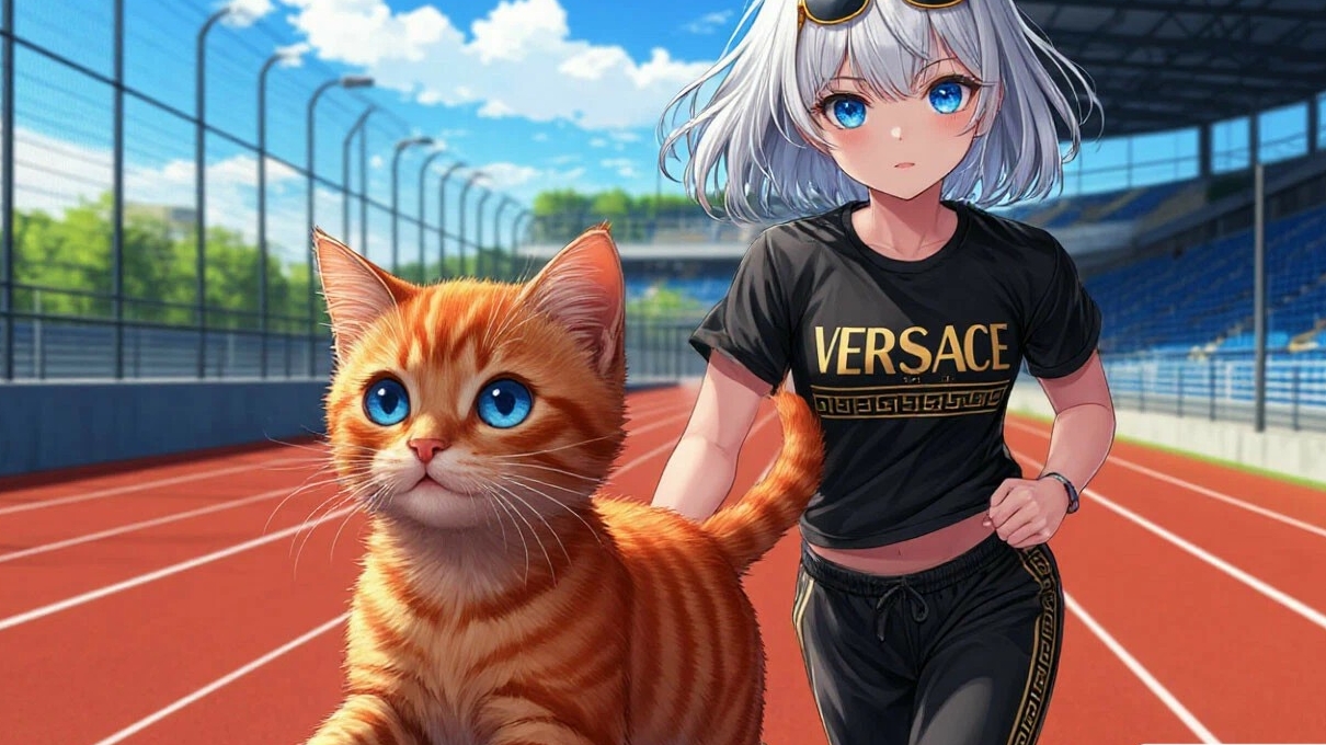 Классное видео о рыжем коте-319 выпуск: Веселые перегонки: девочка и рыжий котенок на спортивной площадке устраивают гонки.