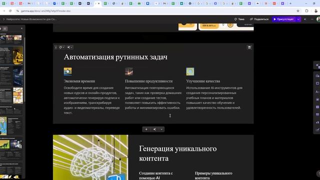 Стать участником Клуба - https://club.omniclub.pro Благодарность по ссылке - https://omniclub.pro/donation 1. Ведущие инструменты: a) Chat GPT (https://chat.openai.com/) Плюсы: - Широкая популярность и большое сообщество пользователей - Быстрая работа и высокая производительность - Хорошо справляется с русским языком - Постоянные обновления и улучшения Минусы: - Может быть перегружен в пиковые часы - Иногда дает неточные или устаревшие данные - Ограниченный контекст в бесплатной версии b) Claude AI (https://claude.ai/) Плюсы: - Отлично обрабатывает большие объемы информации - Подходит для написания объемных текстов, включая книги - Более длинный контекст взаимодействия - Высокая точность и последовательность ответов Минусы: - Менее распространен по сравнению с Chat GPT - Может быть медленнее в некоторых задачах - Ограниченная доступность в некоторых регионах 2. Альтернативные варианты: a) Online GPT (https://study24.ai/) b) Яндекс GPT (https://yandex.ru/project/browser/brand/sg/052) c) Google Gemini (https://gemini.google.com/app) d) Гига-чат от Сбера (https://developers.sber.ru/gigachat/login) Расширенные области применения: 1. Создание онлайн курсов и учебных материалов 2. Разработка лидмагнитов и маркетинговых материалов 3. Составление подробных гайдов и инструкций 4. Организация и планирование онлайн марафонов 5. Подготовка интерактивных практикумов и воркшопов 6. Генерация идей для контента в социальных сетях 7. Создание сценариев для вебинаров и презентаций 8. Разработка персонализированных планов обучения 9. Составление квизов и тестов для оценки знаний 10. Автоматизация ответов на часто задаваемые вопросы (FAQ)
