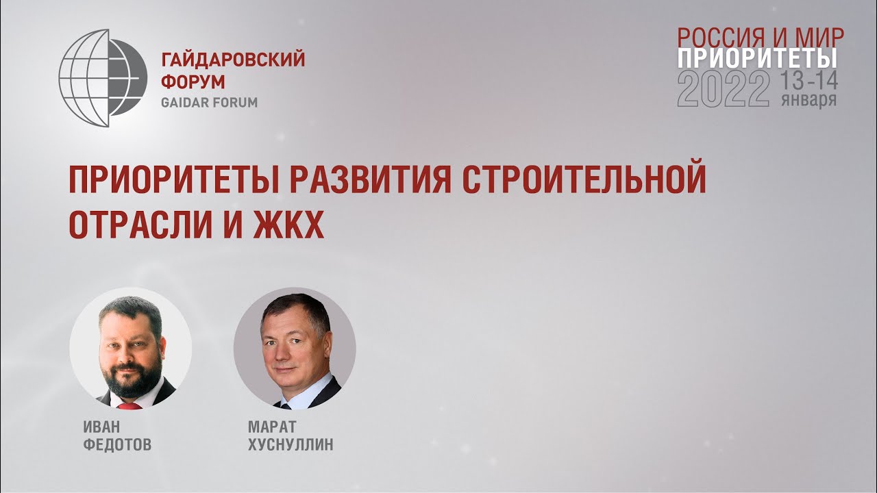 Участники: Иван Федотов, директор Ассоциации инновационных регионов России (АИРР) Марат Хуснуллин, Заместитель Председателя Правительства Российской Федерации Вопросы для обсуждения: • Какая цель новой стратегии развития строительной отрасли? • Что надо сделать, чтобы выправить ситуацию с ЖКХ? • Развитие инфраструктуры: что предполагается стратегией для ее комплексного развития в увязке со всем остальным строительством? Как продолжится развитие комфортной городской среды? • Приоритеты развития транспортной инфраструктуры. Какие новые транспортные системы планируется ввести для повышения качества городской среды? • Будут ли корректировки программы ипотечного кредитования? Какие еще факторы, кроме доступной ипотеки, влияют на реализацию нацпроекта «Жилье и городская среда»? • Как найти баланс между территориальным планированием и градостроительным развитием? • Какие реформы ждут застройщиков?