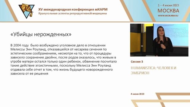 Обидняк Диана Малхазовна. Правовой статус эмбриона. Конференция мКАРМ-XV, сессия « HUMANISTICA: ЧЕЛОВЕК И ЭМБРИОН », 4 июня 2023